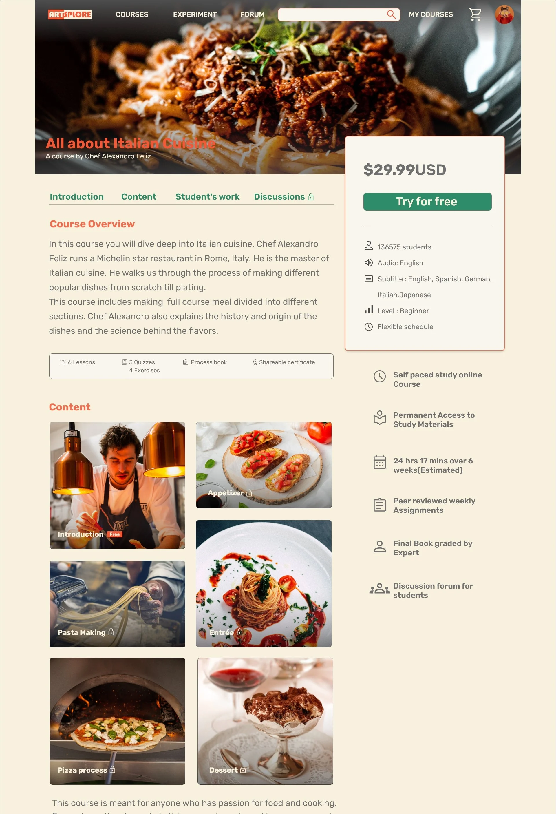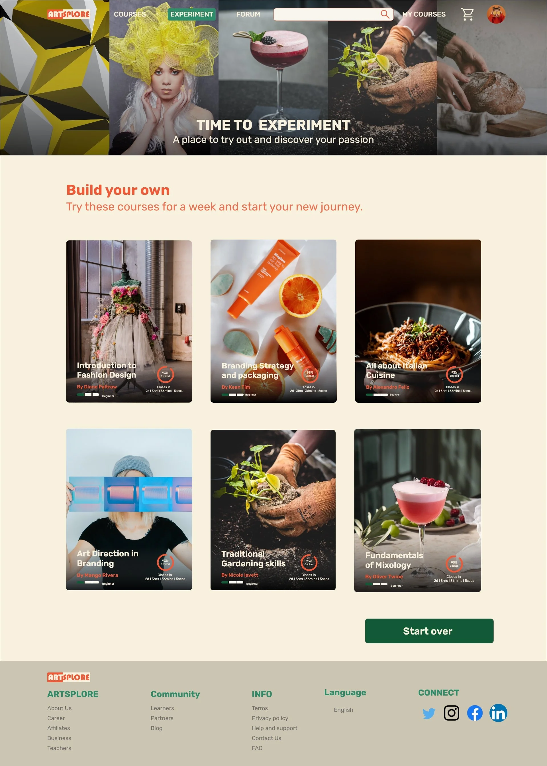 I created Artsplore - a platform that offers personalized courses, allowing them to both experiment as well as advance their knowledge in their field of interests.