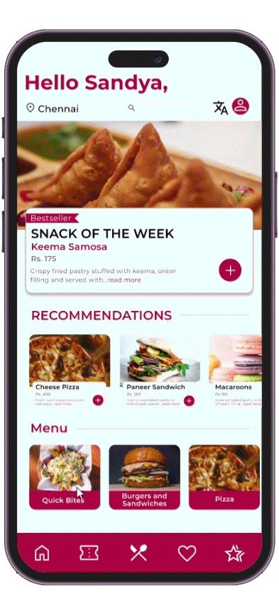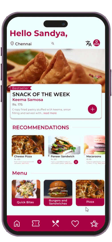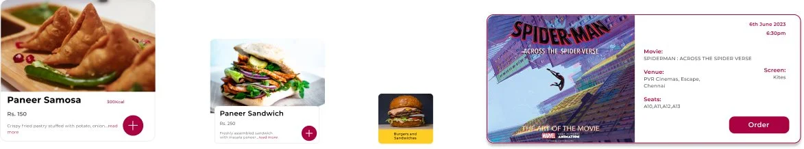 Snack Break’s palette showcases bright, appetizing and visually appealing colors. The palette reflects PVR Cinema’s aesthetics as well, such that the app is relatable by the users.