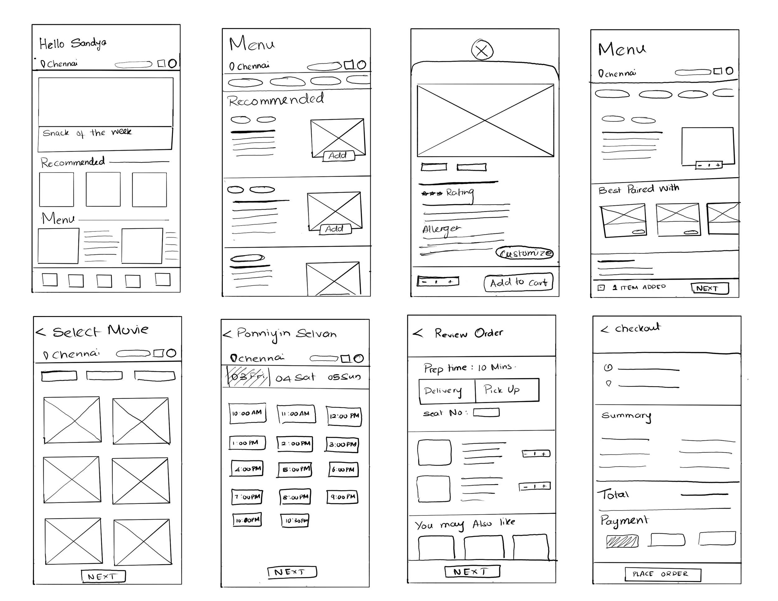 I analyzed Snack Break’s competitors based on the user needs and pain points from initial research. The competitive analysis projected that most of the theatres have ticket booking apps and not much focus dedicated for food ordering. The apps which have a food ordering section have certain gaps which hinders overall user experience.